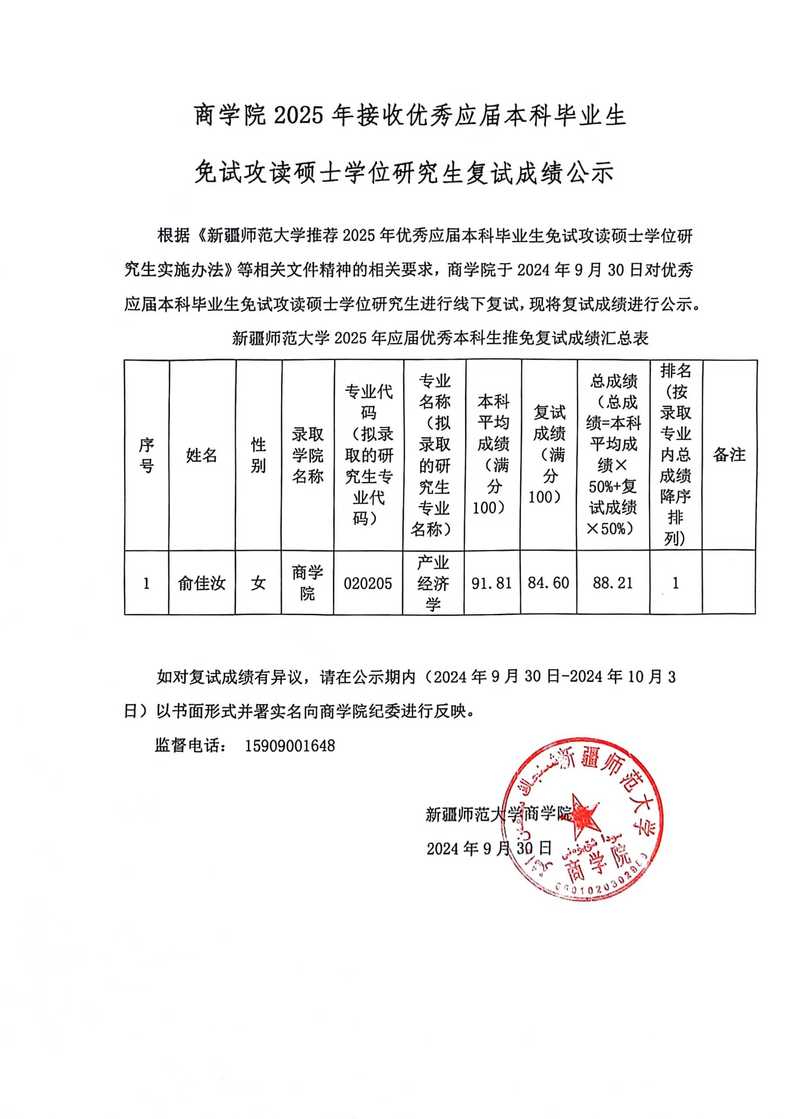 JRS体育 2025年接收优秀应届本科毕业生免试攻读硕士学位研究生复试成绩公示