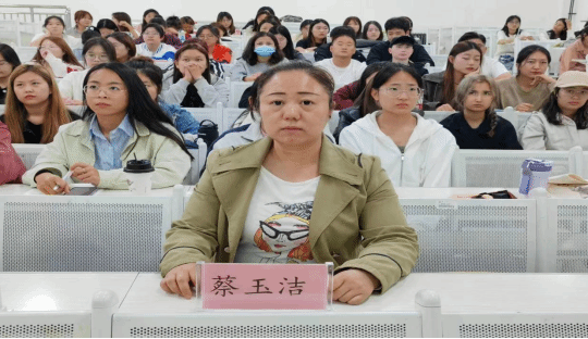 工商管理系系主任蔡玉洁老师主持会议,人力资源管理专业学生参会。