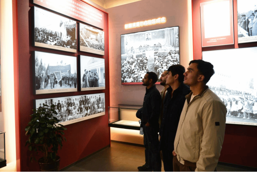 留学生参观新疆历史图片