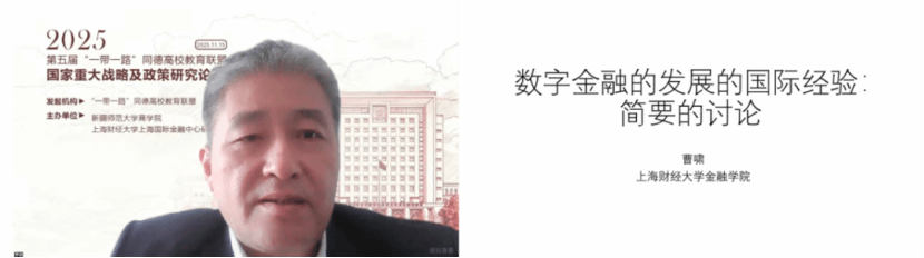副院长曹啸教授围绕“数字金融发展的国际经验借鉴”主题发表主旨演讲。曹啸教授指出,数字金融作为金融领域富有创新活力的前沿方向,其核心在于金融商业模式的创新,与传统金融科技存在差异化侧重。曹啸教授梳理了全球主要国家和地区数字金融的发展态势,重点分析了相关核心要素在行业发展中的作用与定位,以及人工智能等新技术与数字金融的融合应用趋势。曹啸教授深入探讨了各国数字金融监管政策框架与实践路径,对比了不同地区的发展模式与监管思路,剖析了创新与风险控制的平衡之道,同时结合国际实践,对我国数字金融领域的发展方向、技术路径选择及政策优化等方面进行了思考,为相关领域的理论研究与实践探索提供了宏观视角与有益借鉴。