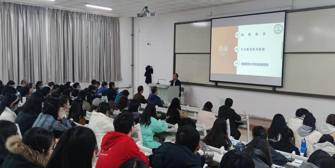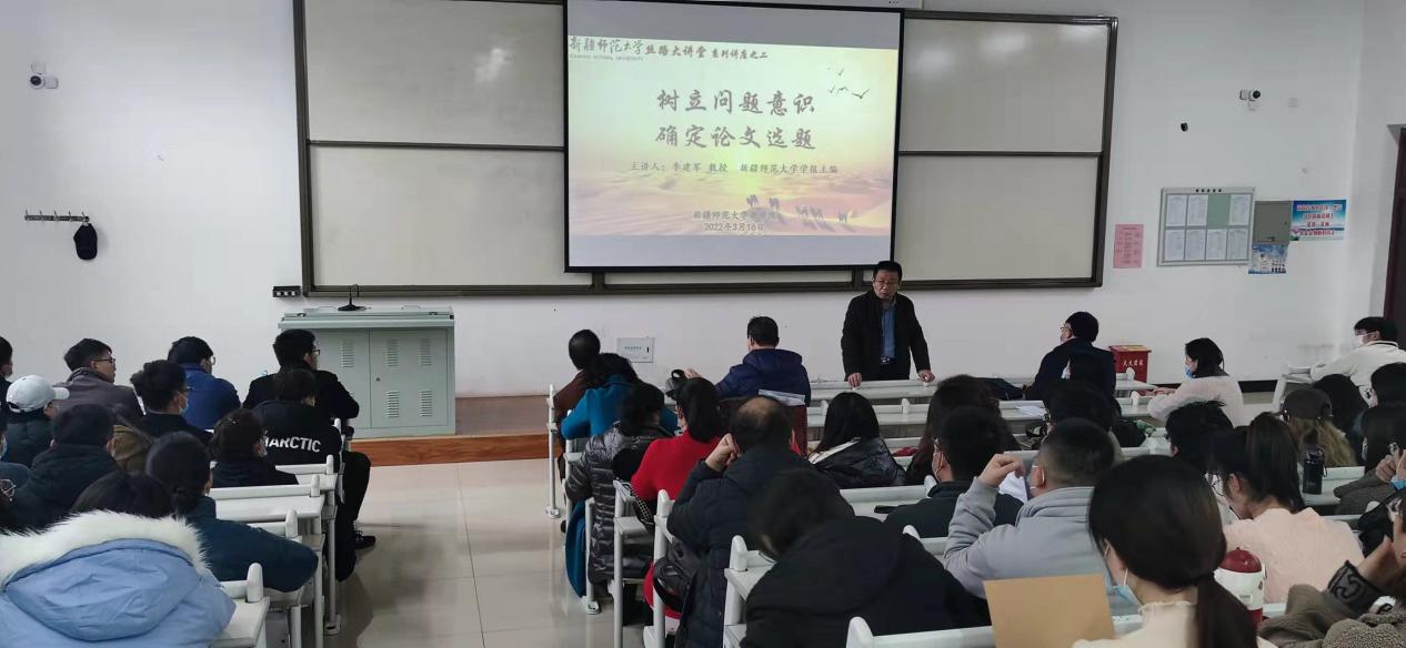 讲座中,李建军教授围绕“树立问题意识,确定论文选题”,用生动幽默的语言,从选题策划、十大期刊热点选题、新疆师范大学学报选题等方面向大家讲述了期刊论文的选题与投稿经验。并向大家讲解了《中国社会科学》等核心期刊的近期发文方向以及新疆师范大学学报近五年来的选题策划。
