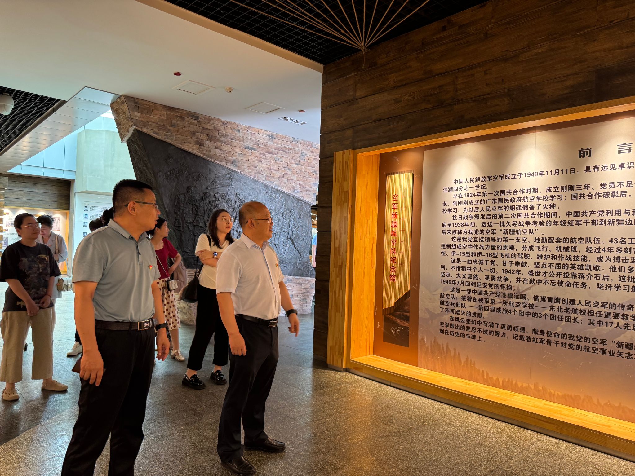 在纪念馆,党员同志们在讲解员的引导下,通过观看历史文物、历史图片以及影像资料,详细了解了生动地再现了新疆航空队在艰苦条件下诞生、发展、壮大的光辉历程。详细了解了航空队成立初期,老一辈革命者克服重重困难,为培养新中国第一批航空人才所做出的卓越贡献。他们在物资匮乏、技术落后的条件下,凭借坚定的理想信念和顽强的奋斗精神,为人民空军的发展积累了经验,这种精神深深触动了在场的每一位党员。
